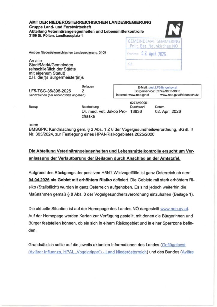Amtstafel Stets am Laufenden beim Bürgerservice Waldbrandverordnung 2026 mehr Vogelgesundheitsverordnung mehr Information zur Zeckenschutzimpfung mehr Kundmachung der Mitglieder der Gemeinde-/ Sprengelwahlbehörde mehr Ortspolizeiliche Verordnung mehr Kundmachung Landarbeiterkammerwahl mehr