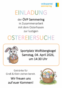 Die Volkspartei Semmering lädt in Zusammenarbeit mit dem Osterhasen zur lustigen Ostereiersuche.